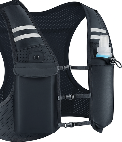 Chaleco de hidratación para correr con frasco suave de 500ml, bolsillo impermeable para teléfono, paquete de hidratación ligero, correas ajustables sin rebote